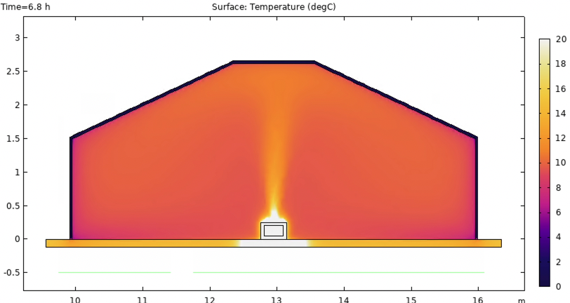 COMSOL model of a molten salt thermal brick heating a Mongolian ger