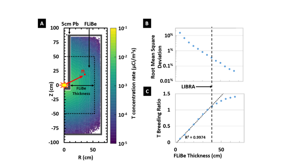 1. Ferry, Sara E., et al. ”The LIBRA Experiment: Investigating Robust Tritium Accountancy in Molten FLiBe Exposed to a DT Fusion Neutron Spectrum.” Fusion Science and Technology 79.1 (2023): 13-35. 2. Romano, Paul K., et al. ”OpenMC: A state-of-the-art Monte Carlo code for research and development.” Annals of Nuclear Energy 82 (2015): 90- 97.